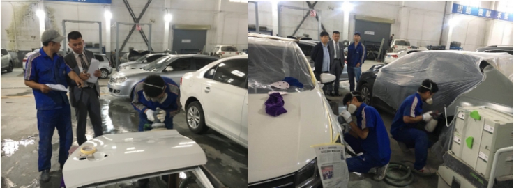 (物產(chǎn)汽貿(mào)公司 訊 崔燕飛、杜慶華/文攝)為進(jìn)一步提升公司售后維修人員業(yè)務(wù)水平,提高公司維修工人崗位技能與實(shí)際操作能力,從而更好的服務(wù)于客戶車輛的維修工作,為顧客安全出行提供有力保障。9月16日上午,總經(jīng)理助理、售后服務(wù)總監(jiān)杜慶華帶領(lǐng)售后管理人員,在朝陽車間對(duì)售后服務(wù)部即將轉(zhuǎn)正的4名漆工學(xué)徒進(jìn)行了現(xiàn)場考核。
