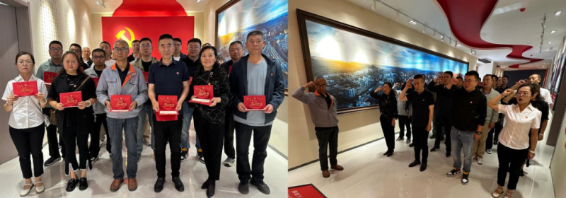 參觀結束后,全體黨員面對黨旗,莊嚴宣誓,重溫入黨誓詞,公司黨委書記王兆明為在場的黨員同志發放政治生日賀卡,并贈予政治生日祝福。